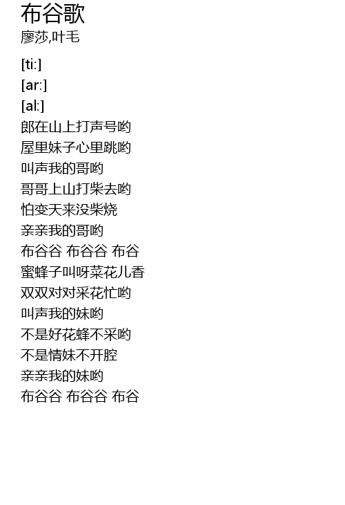 | [00:34.30] | 布谷谷 布谷谷 布谷 |