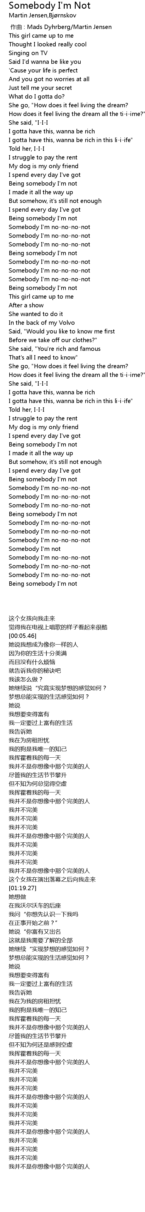| [00:46.52] | Being somebody I' m not |