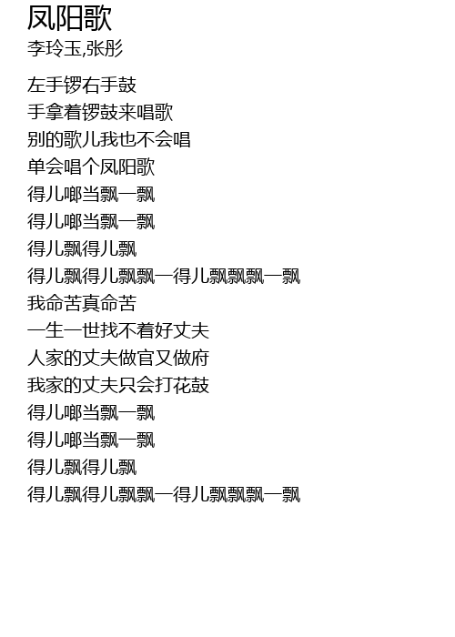 | [00:49.460] | dān huì chàng gè fèng yáng gē |
