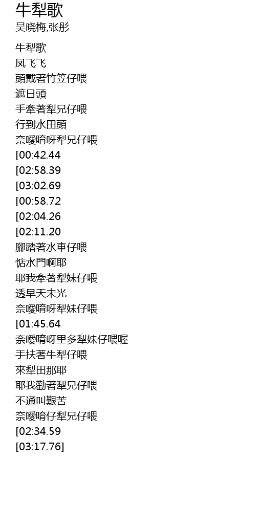 | [01:35.75] | 耶我牽著犁妹仔喂 |