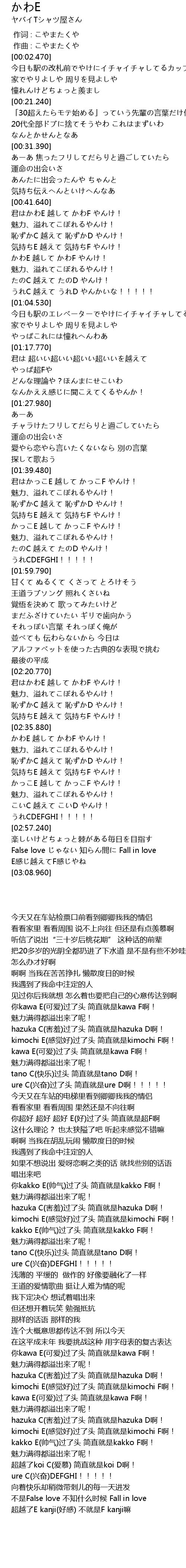 | [00:43.040] | 君はかわE 越して かわF やんけ! |