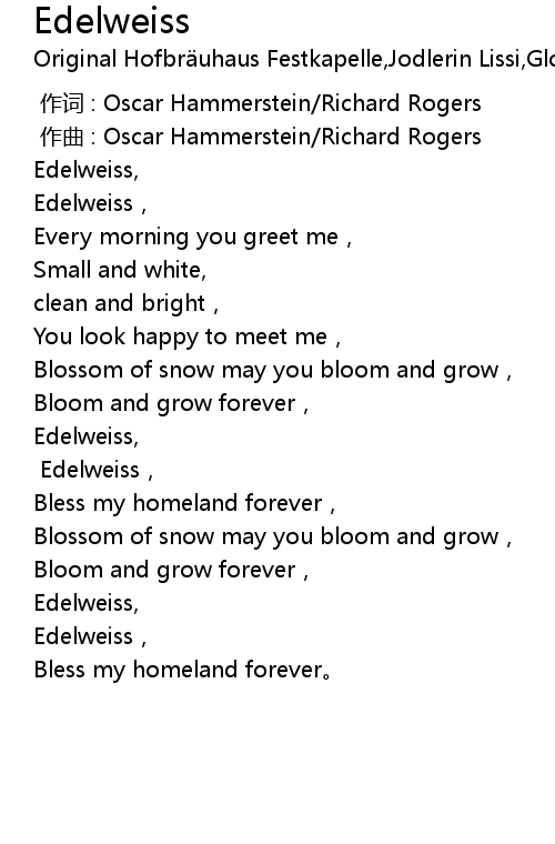 | [00:01.000] | 作词 : Oscar Hammerstein/Richard Rogers |
