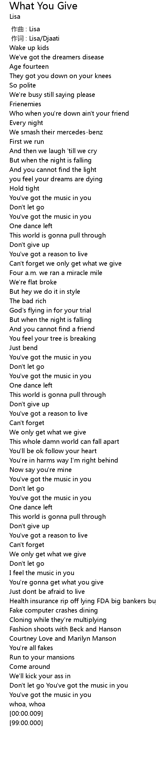 | [01:37.73] | Can' t forget we only get what we give |