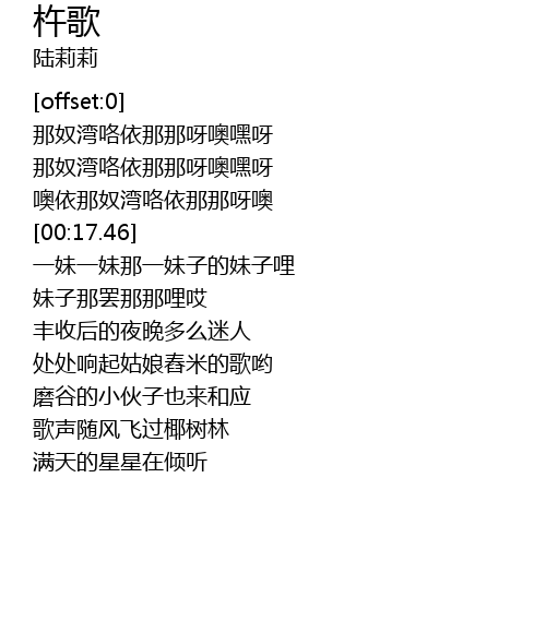 | [00:33.93] | 处处响起姑娘舂米的歌哟 |