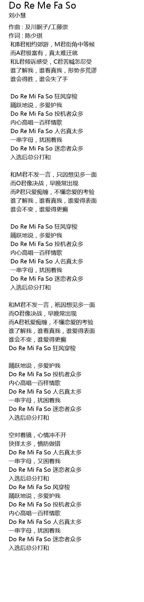 | Do Re Mi Fa So mi lian zhe zhong duo | |