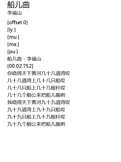 | [00:00.600] | 船儿曲 - 李福山 |
