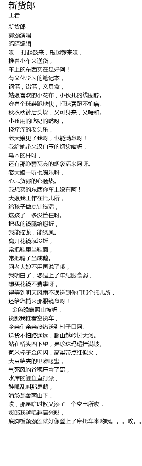 | [02:34.14] | 送货不怕路途远,翻山越岭过大河。 |