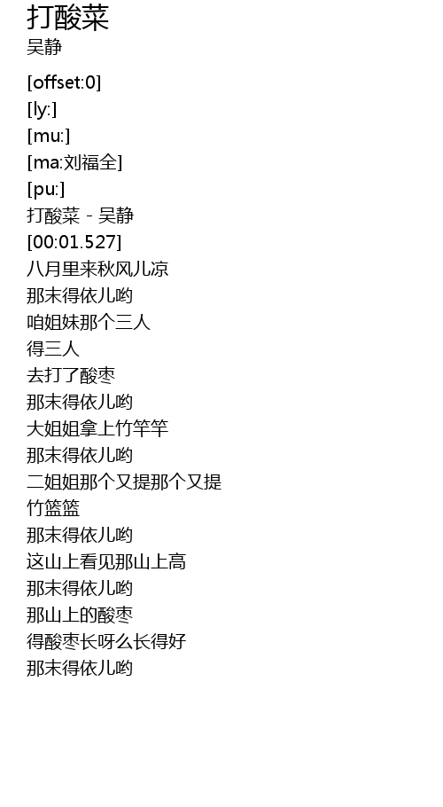 | [00:54.225] | 得酸枣长呀么长得好 |