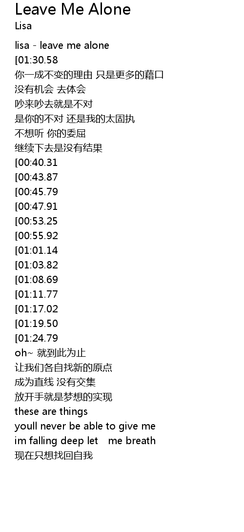 | [00:23.90] | 你一成不变的理由 只是更多的藉口 |