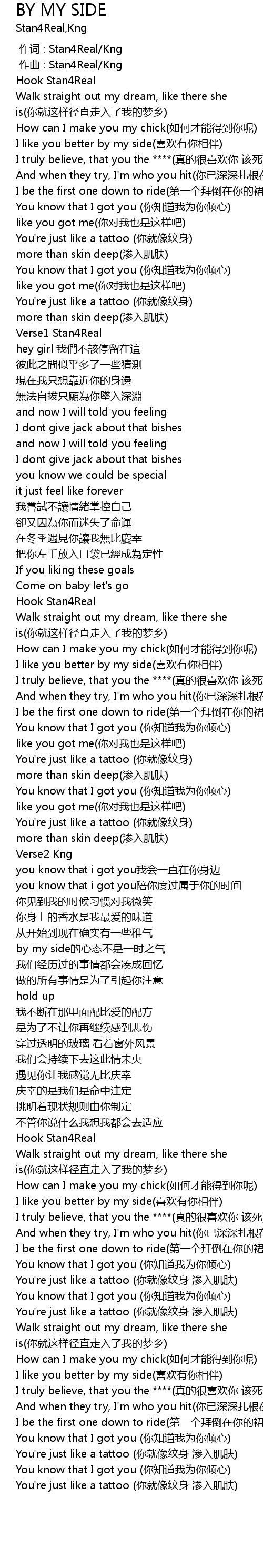 | [00:01.054] | zuò qǔ : Stan4Real Kng |