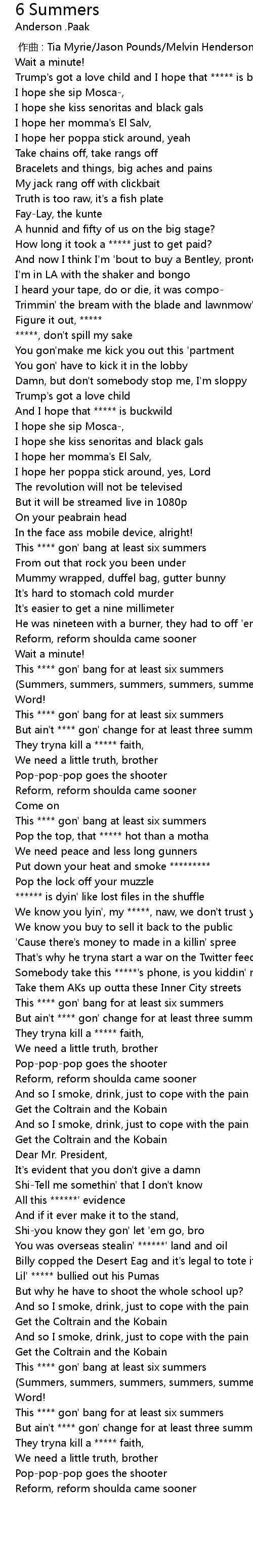| [03:05.61] | This gon' bang for at least six summers |