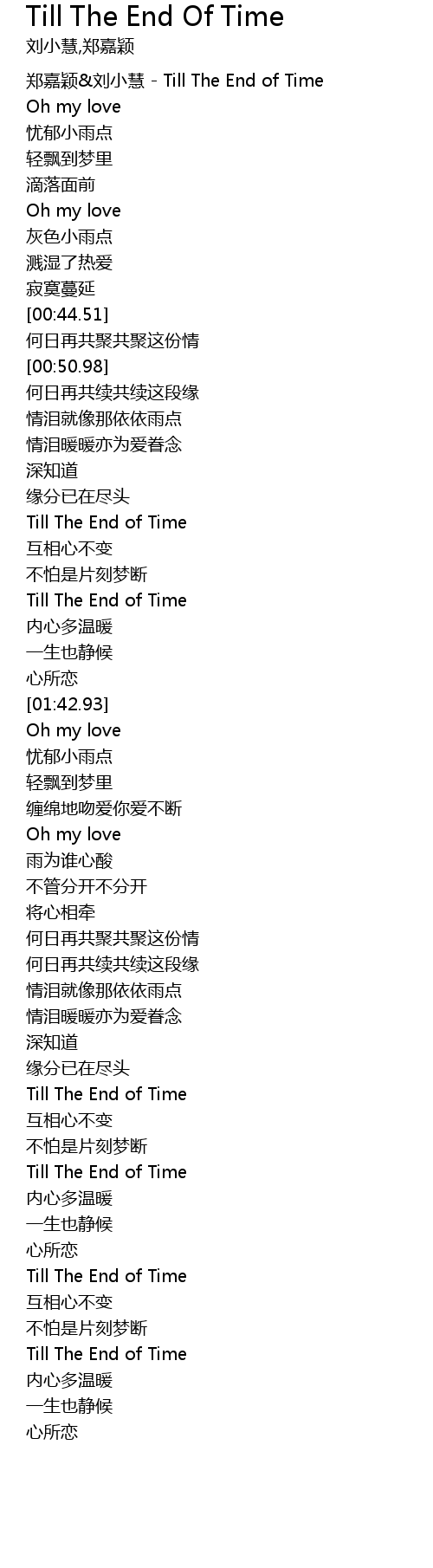 | [00:01.22] | zheng jia ying liu xiao hui Till The End of Time |