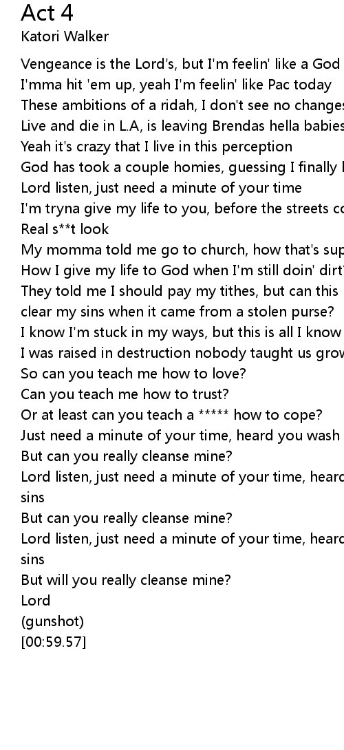 Lord listen, just need a minute of your time, heard you wash away our sins |