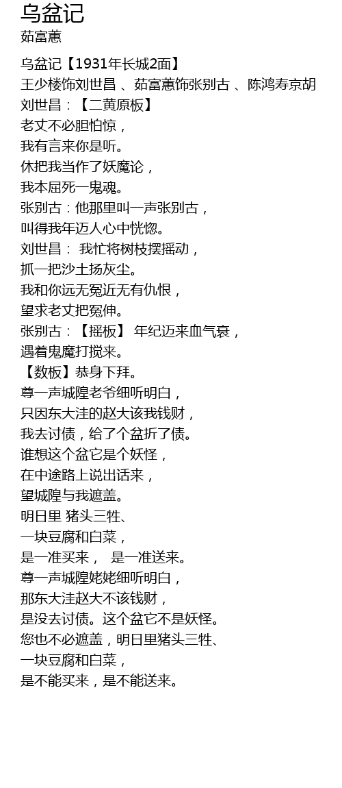 | [00:00.31] | 乌盆记【1931年长城2面】 |