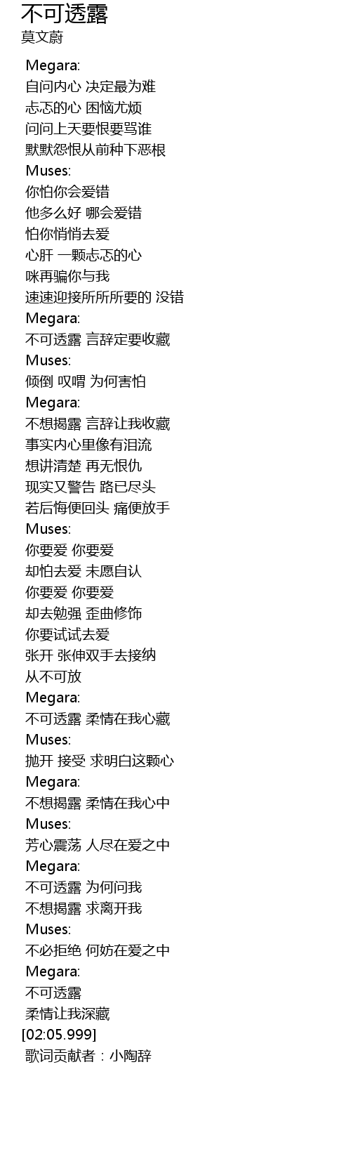 | [00:36.500] | 不可透露 言辞定要收藏 |