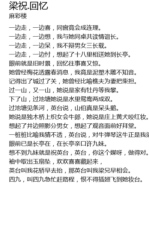 | 想不到九妹就是祝英台,英台,你这个媒呀,做得对。 | |