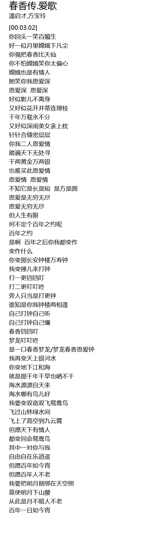 | [03:59.42] | 是一口春香梦龙/梦龙春香恩爱钟 |