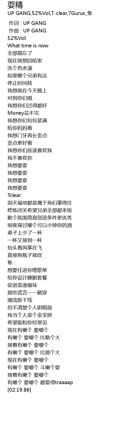 | [00:01.000] | zuo ci : UP GANG |