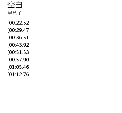 | [02:10.65][01:12.76] | mo hu de ji yi kong bai de sheng huo |