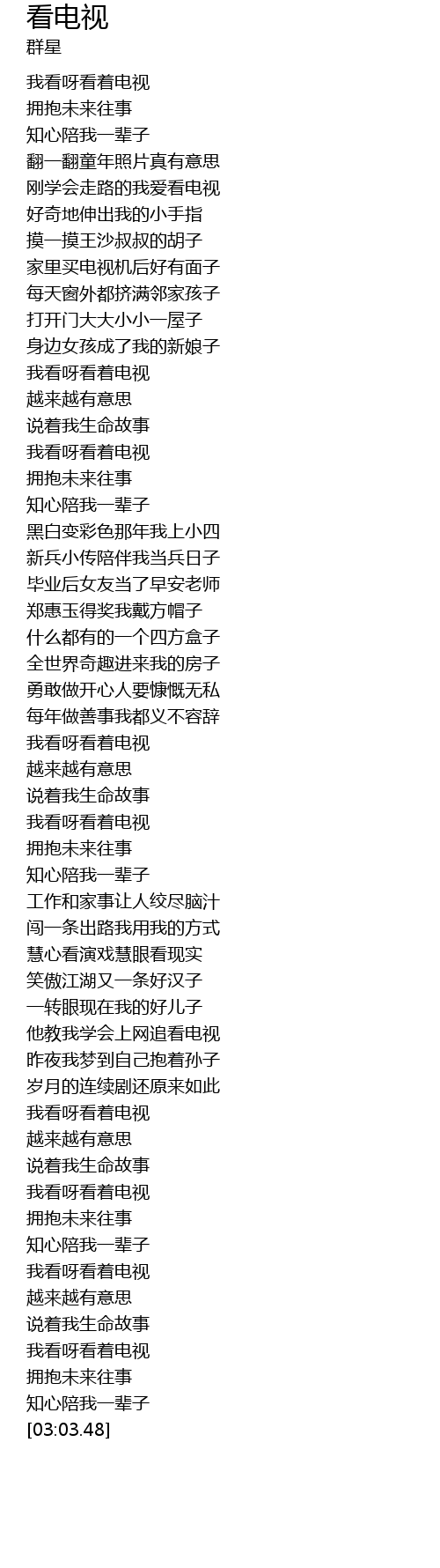 | [01:40.77] | wǒ kàn ya kàn zhe diàn shì |