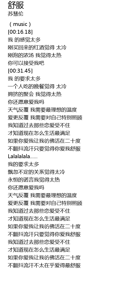 | [00:46.94] | 天气反覆 我需要最理想的温度 |