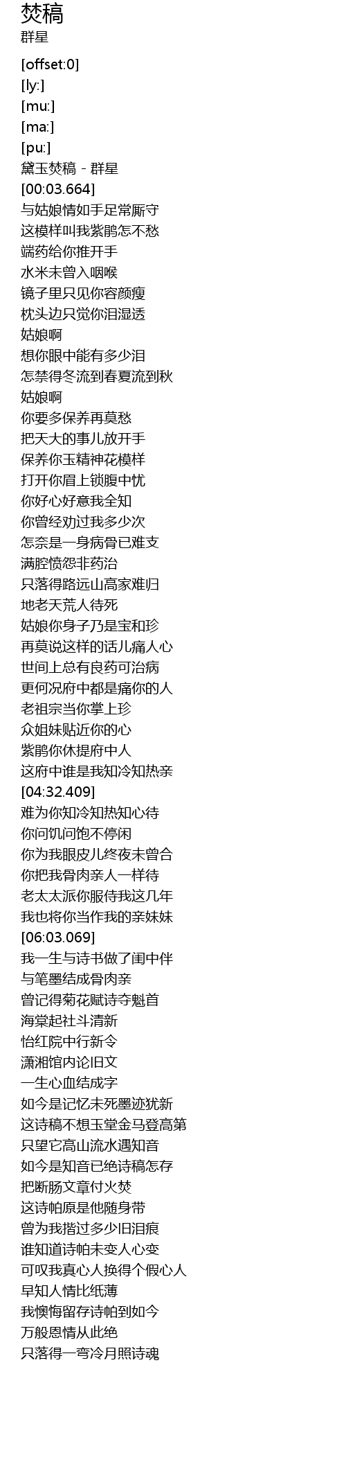 | [00:00.621] | 黛玉焚稿 - 群星 |