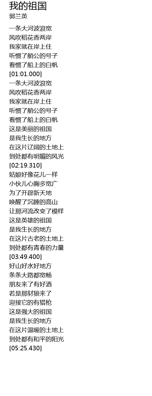 | [01:50.990] | 这是美丽的祖国 |