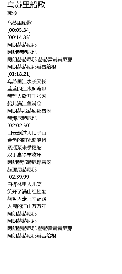 | [02:32.53] | 阿朗赫那赫尼那雷呀 |