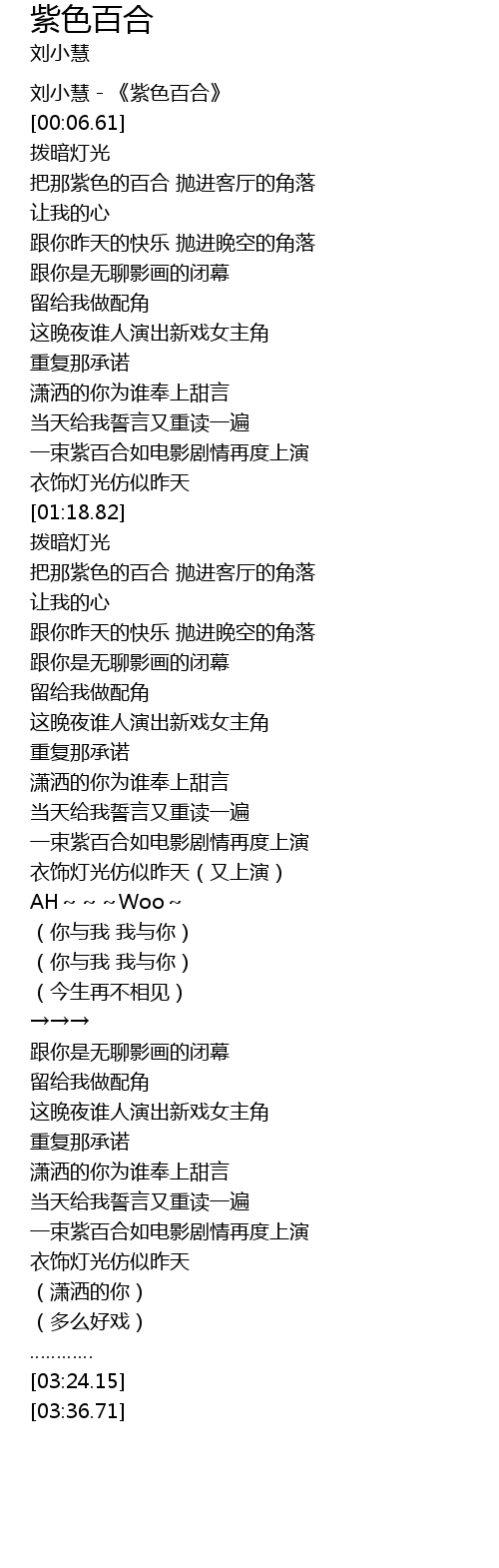 | [00:00.00] | 刘小慧-《紫色百合》 |