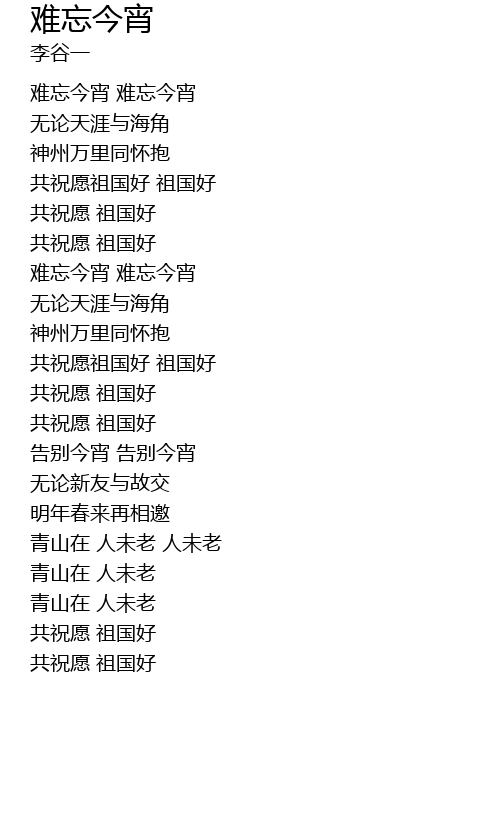 | [01:43.000] | 难忘今宵 难忘今宵 |