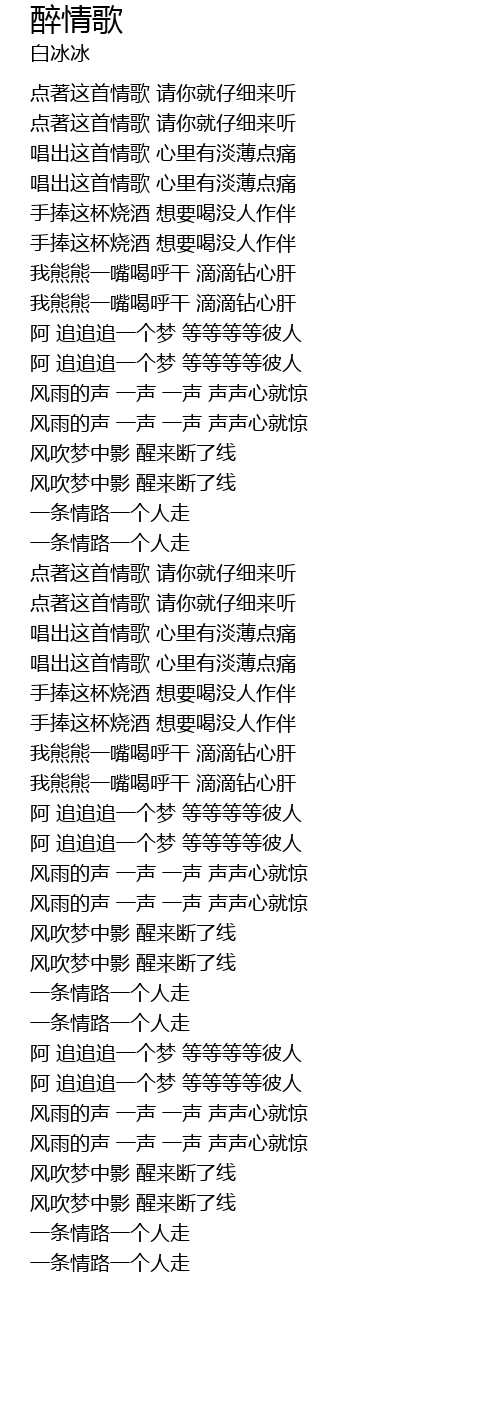 | [00:39.950] | shǒu pěng zhè bēi shāo jiǔ xiǎng yào hē méi rén zuò bàn |