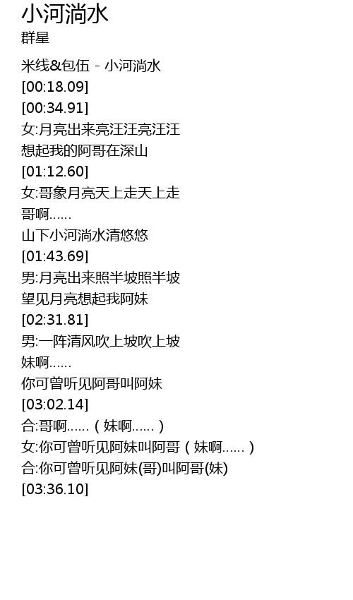 | [00:00.00] | 米线&包伍 - 小河淌水 |