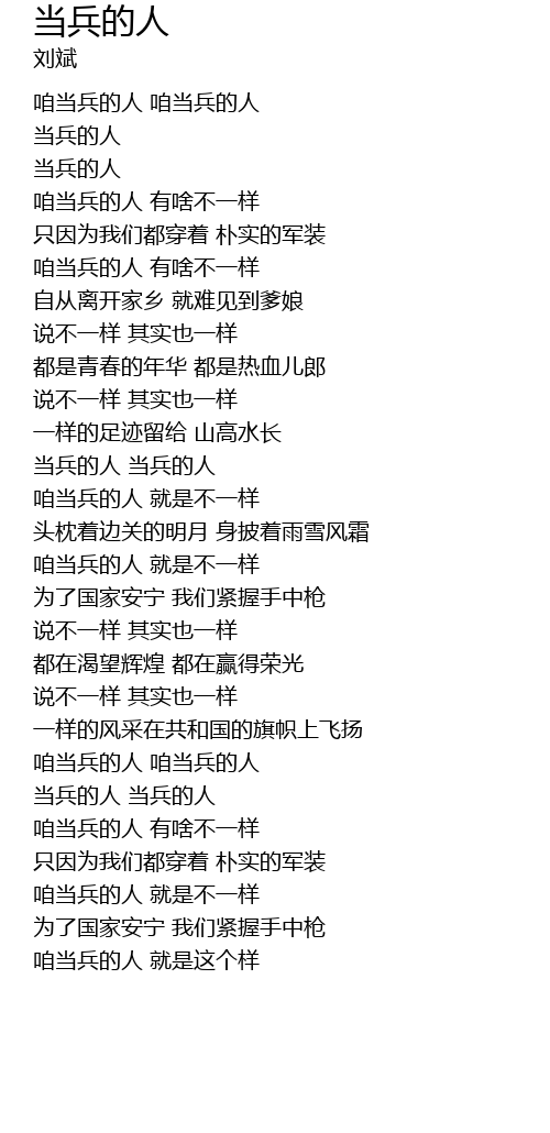 | [00:18.390] | 咱当兵的人 有啥不一样 |