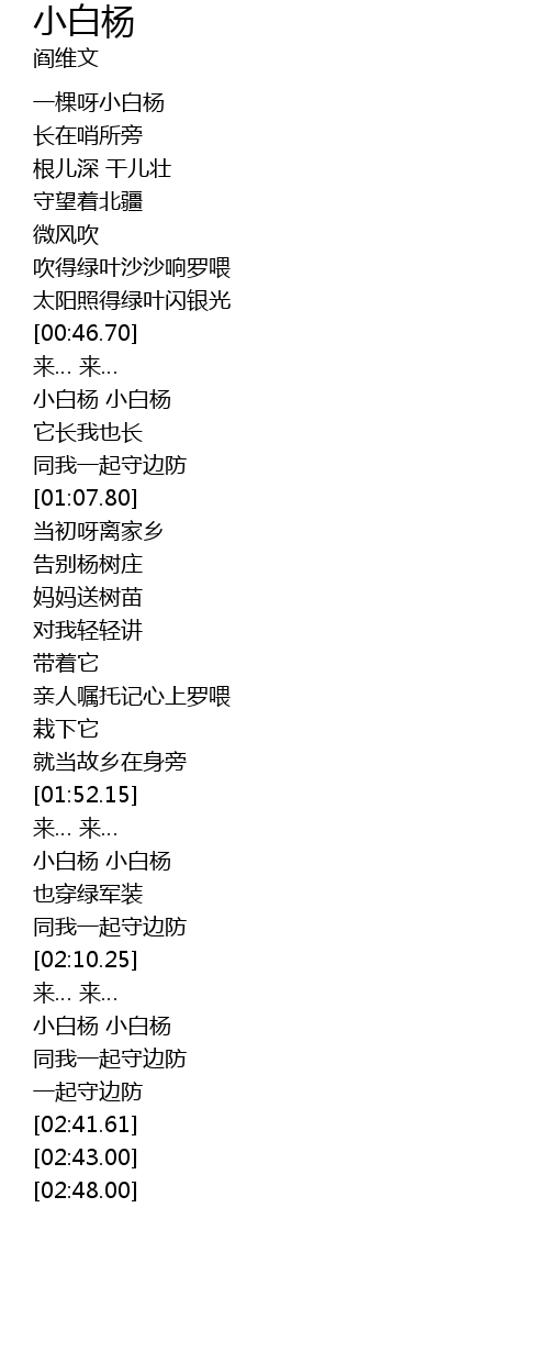 | [02:00.17] | 小白杨 小白杨 |