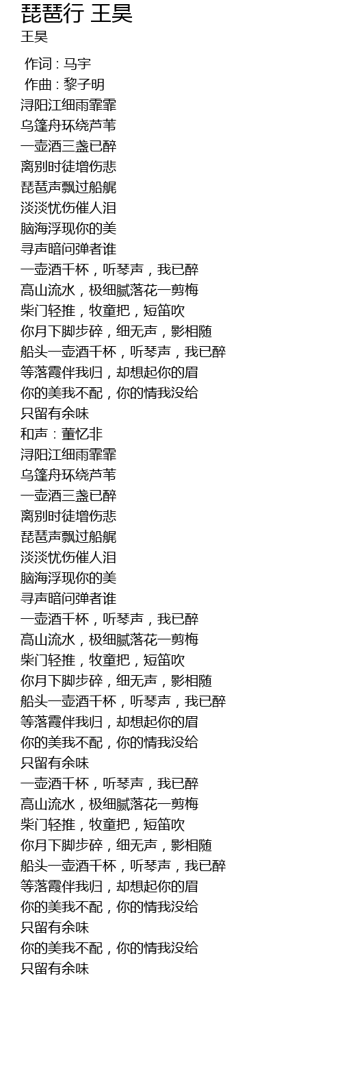 | Song | 琵琶行 王昊 |