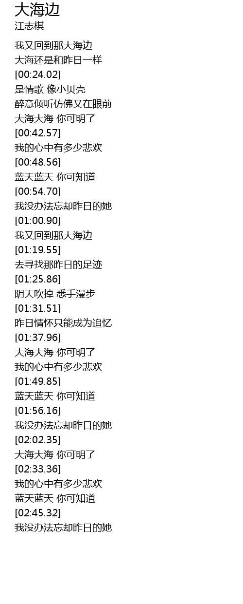 | [00:12.56] | wǒ yòu huí dào nà dà hǎi biān |