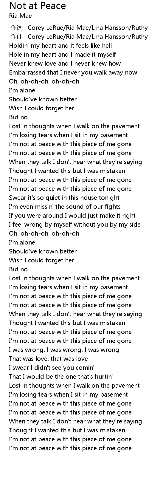 | [00:47.76] | I' m not at peace with this piece of me gone |