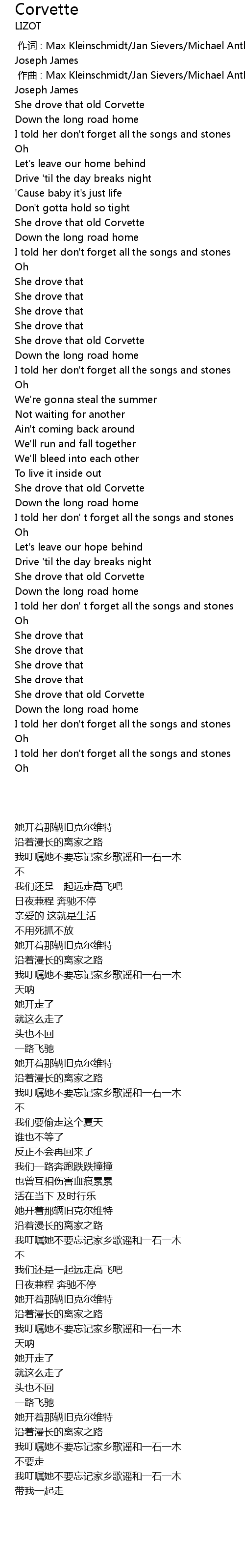 | [00:00.000] | 作词 : Max Kleinschmidt/Jan Sievers/Michael Anthony James/Samuel Joseph James |