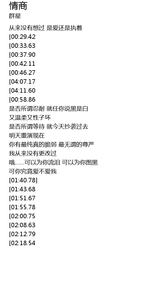 | [04:20.14][04:11.60][00:54.32] | 而你究竟爱不爱我 |