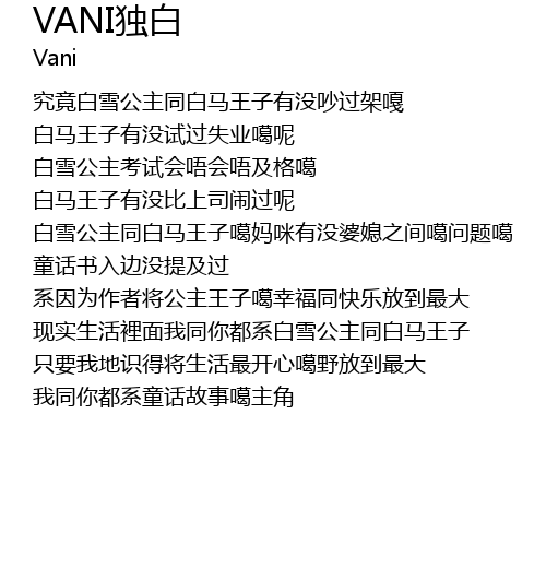 | [00:01.17] | 究竟白雪公主同白马王子有没吵过架嘎 |
