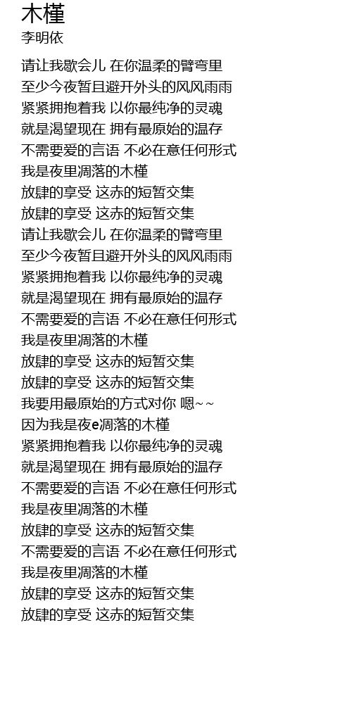| [00:31.61] | 就是渴望现在 拥有最原始的温存 |