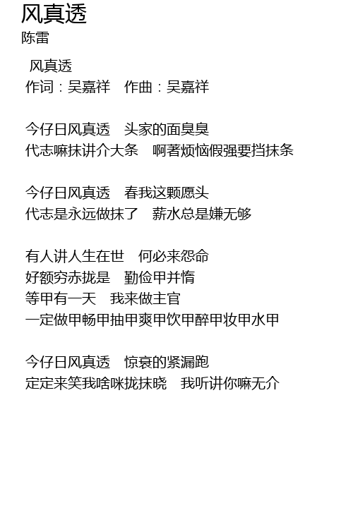 | 定定来笑我啥咪拢抹晓 我听讲你嘛无介 |