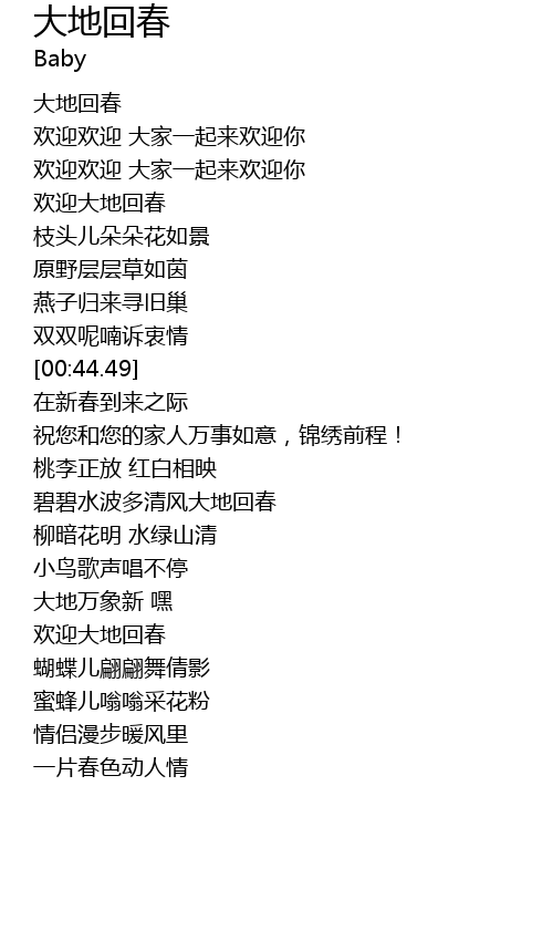 | [00:19.45] | huān yíng dà dì huí chūn |