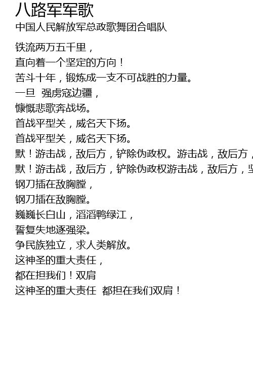 | [00:40.340] | 默!游击战,敌后方,铲除伪政权。游击战,敌后方,坚持反扫荡! |