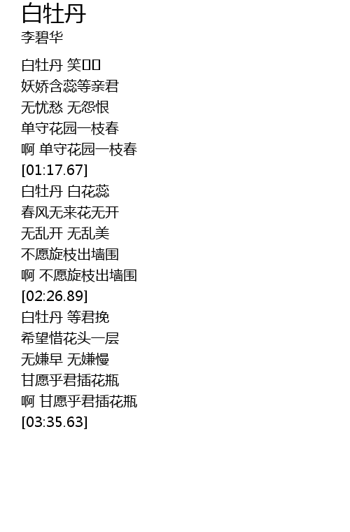 | [01:36.39] | 白牡丹 白花蕊 |