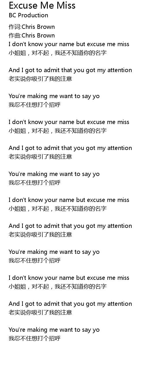| I don't know your name but excuse me miss | |