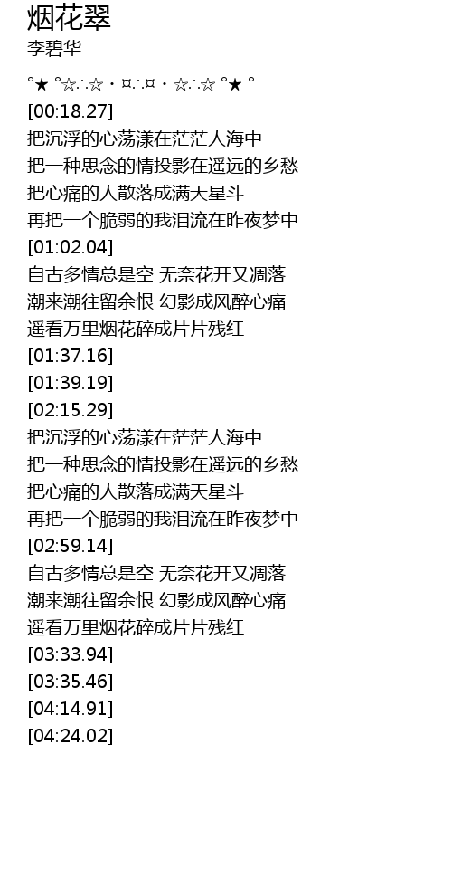 | [01:27.17] | 遥看万里烟花碎成片片残红 |