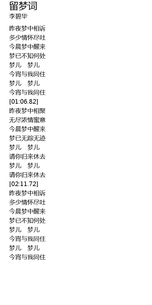 | [00:14.31] | zuó yè mèng zhōng xiāng sù |
