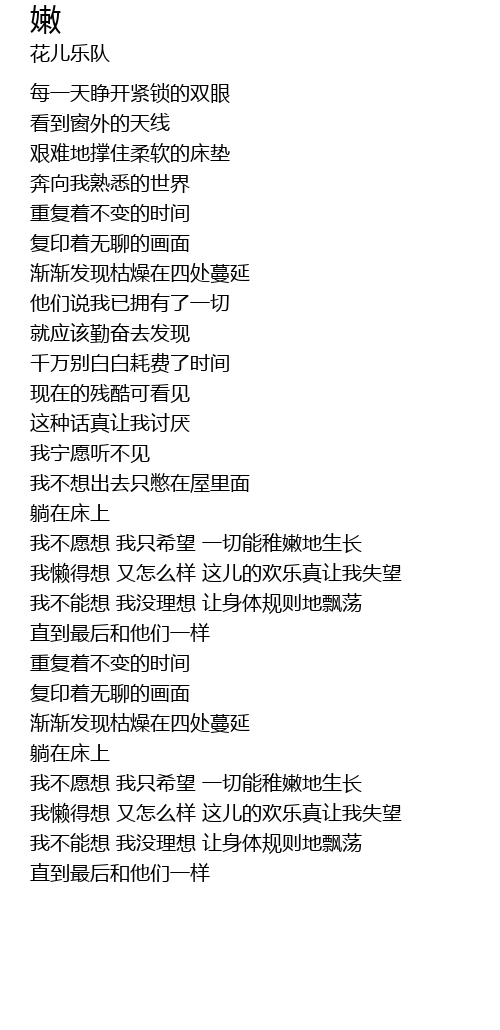 | [00:58.0] | 我不愿想 我只希望 一切能稚嫩地生长 |