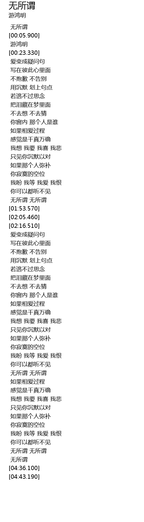 | [04:14.250] | wú suǒ wèi wú suǒ wèi |